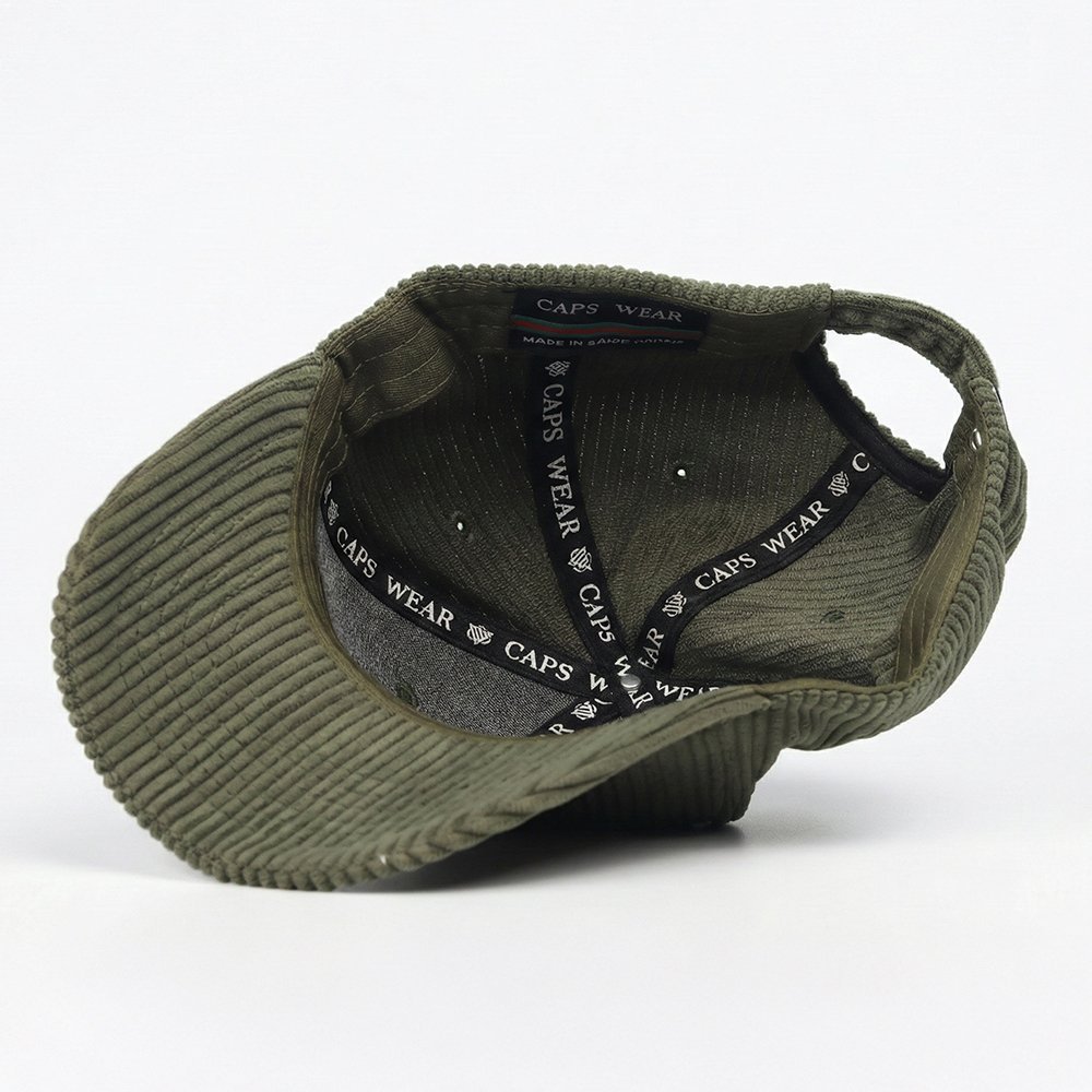 The “Green” cap embodies a sense of calm and strength, featuring a deep forest green corduroy crown with the white embossed logo for a clean and refined look. The matching green visor adds a cohesive touch, enhancing its modern yet natural vibe. Perfect for those who want to express their unique style while staying grounded, this cap offers a timeless look with a twist of nature-inspired elegance.
