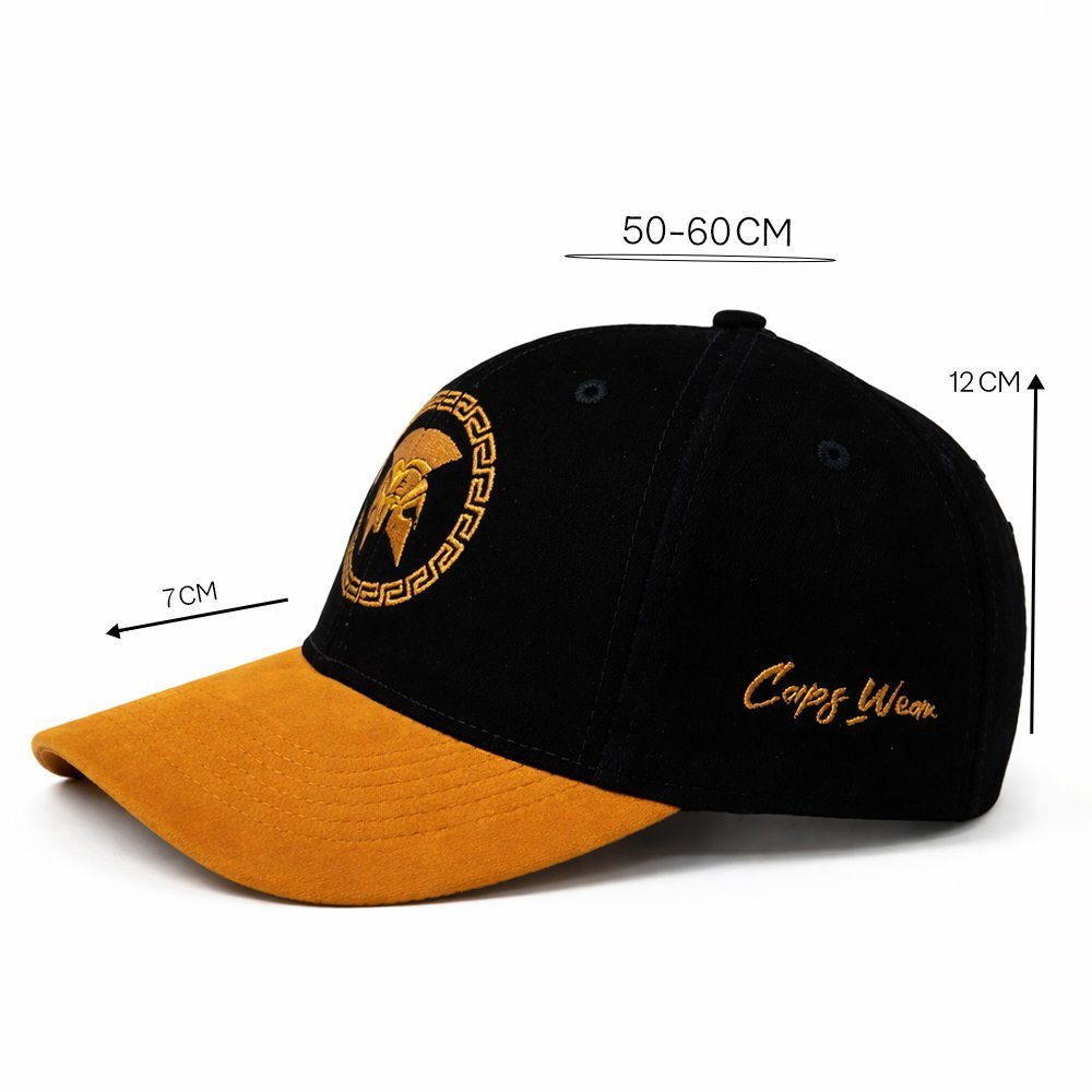 Unveil the strength within with the “Spartan Legacy” cap, a tribute to timeless power and resilience. The striking black suede crown is adorned with a gold-embroidered Spartan helmet, framed by an intricate Greco-Roman pattern, symbolizing courage and valor. The golden yellow visor adds a bold contrast, making this cap a standout piece that commands attention. Perfect for those who channel their inner warrior, the “Spartan Legacy” is more than just a cap—it’s an emblem of strength, heritage, and honor.