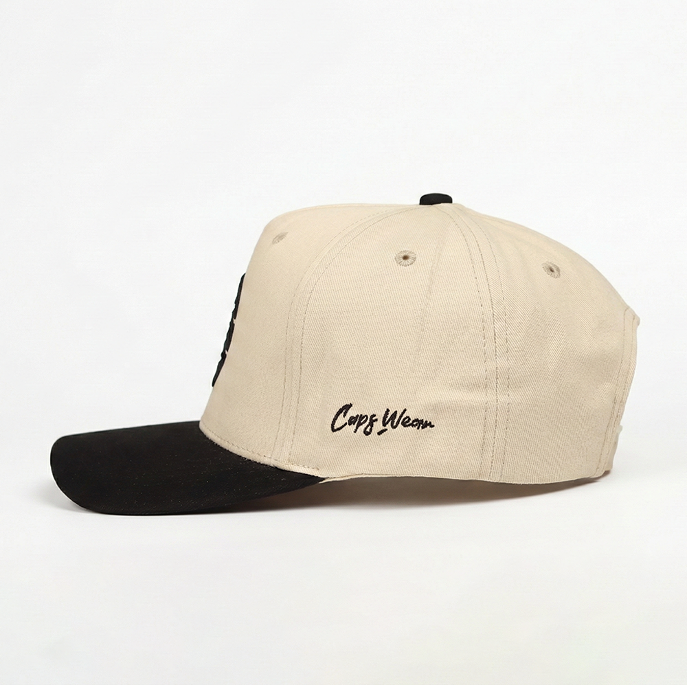 The Caps Wear Premium Symbolic Essence Cap blends timeless design with refined craftsmanship. Featuring a beige cotton crown and a black velvet visor, this cap delivers both sophistication and everyday comfort.